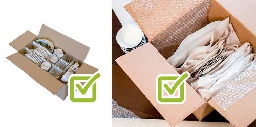 3. Укладка в коробки: укладывайте посуду вертикально (как в магазине), заполняя свободное пространство между предметами мягкими материалами.