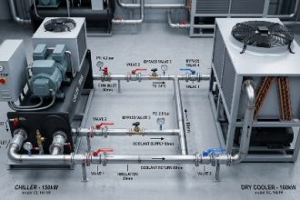 Совмещённые системы охлаждения на базе чиллера и драйкулера позволяют эффективно использовать как свободное охлаждение зимой, так и водяное рассеивание тепла летом.